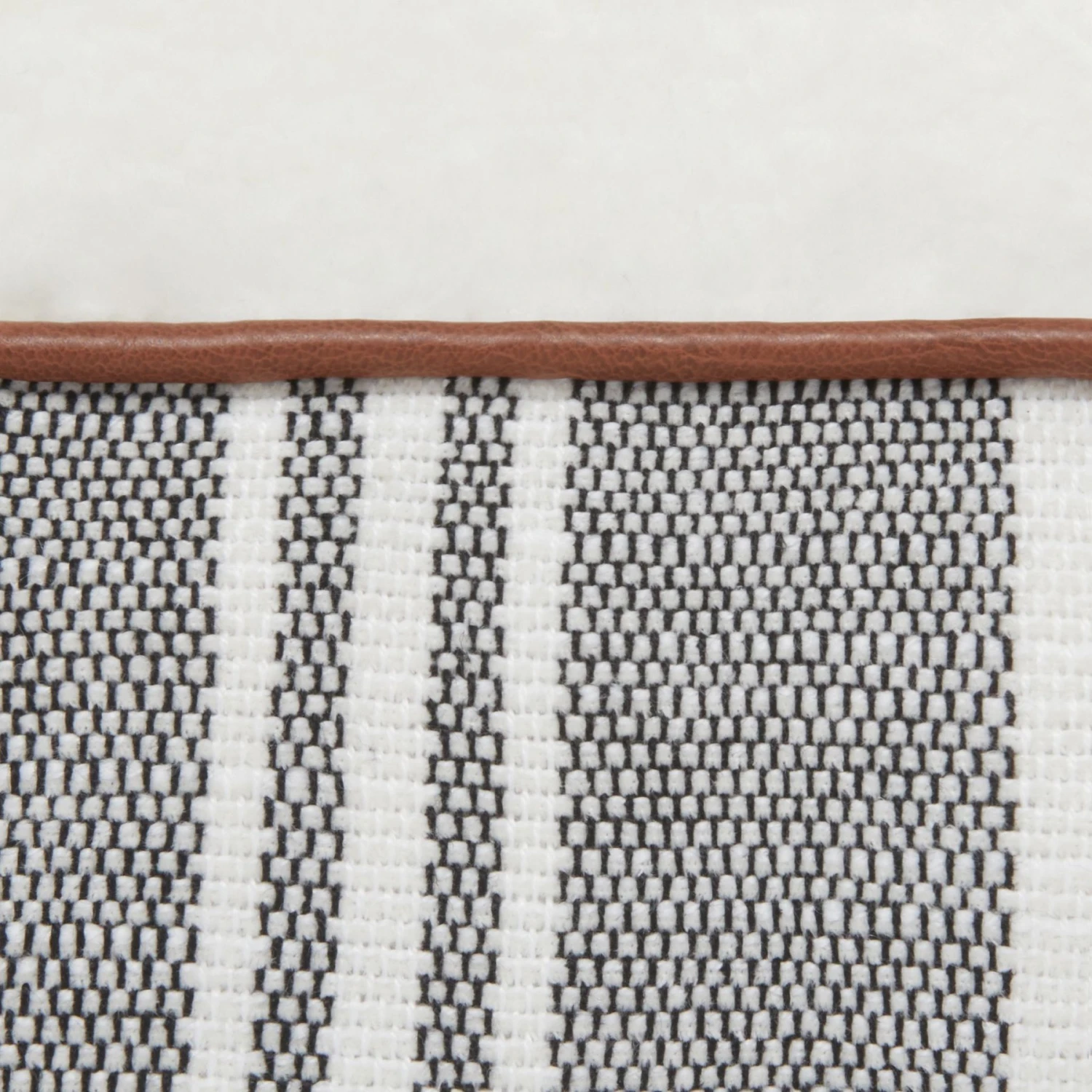 - A rustic, farmhouse pattern and faux leather-trim piping bring some class to your pet’s nap.