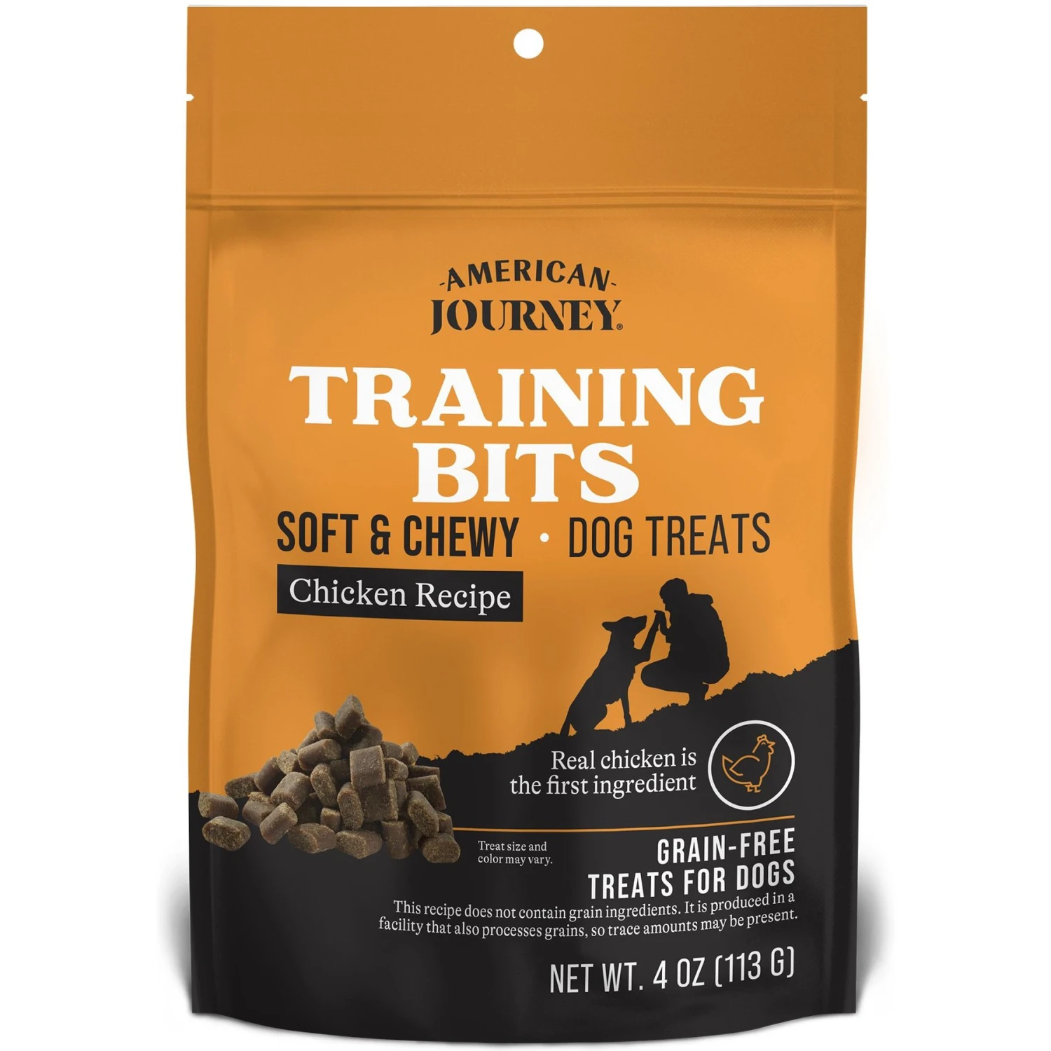 American Journey Chicken Recipe Grain-Free Soft & Chewy Training Bits Dog Treats, 4-oz bag — Reward your sidekick with a chewy, tasty treat that’s just the right size for training. American Journey Soft & Chewy Training Bits are moist, soft bites that are crafted with real chicken as the first ingredient for the taste dogs crave.